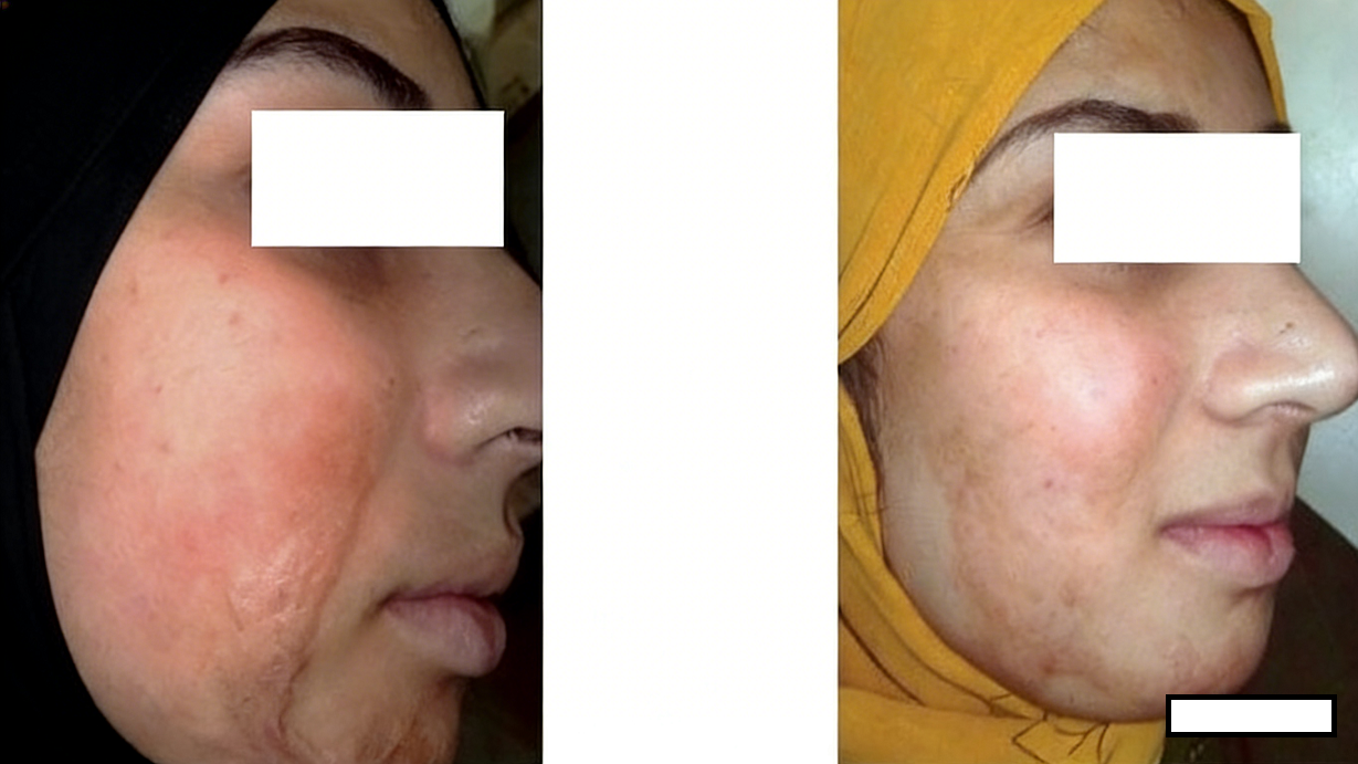 第一个月结束,瘢痕厚度平均减少22%,颜色开始淡化。
