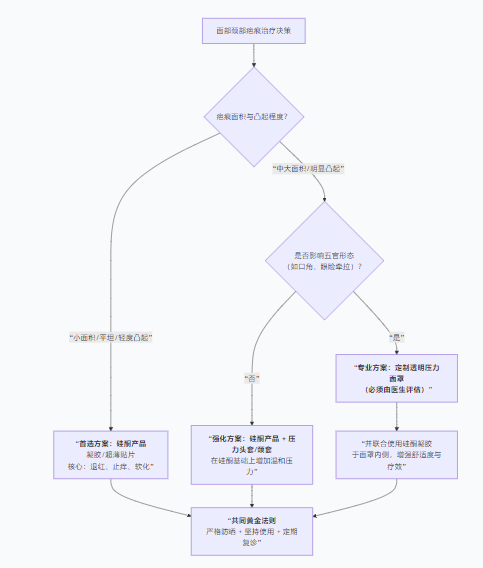 请记住:对于面部和颈部,治疗的首要原则是“精细”和“综合”。从硅酮产品开始通常是安全有效的第一步,如果控制不住,再在医生指导下升级到压力面罩等更强力的治疗。