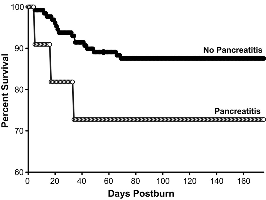 我们在儿科患者中的研究还显示烧伤后急性呼吸炎的发生率较低(0.05%)。Ryan等人[10]在对成人大面积烧伤患者的回顾性综述中报告称,40%的患者出现与新发感染时间相关的高淀粉酶血症或高脂肪脂血症,且大多数病例与胰腺炎症状相关。此外,吸入损伤、相关创伤和剥皮切开术被认定为胰腺炎的风险因素。我们研究与本研究之间AP发病率的差异,可以用所研究人群的差异来解释。成人中,AP中较高比例与酒精摄入或胆结石有关,而儿童中约有25%的病例病因不明。创伤、结构异常、多系统疾病、药物和毒素以及病毒感染是大多数已知原因[11, 12]。在我们的研究中,没有患者有明显的急性胰腺炎病因。然而,样本量较小,我们认为要获得显著结论,应在更大的数据库中研究。