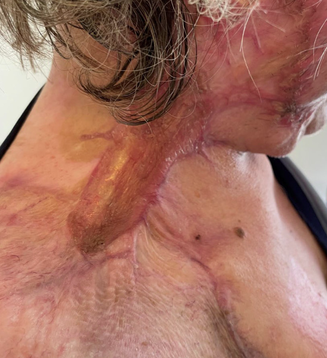 55岁的珍女士,本该安享平淡舒心的晚年,每日买菜做饭、陪伴家人,日子过得平淡而踏实。可一场突如其来的燃气爆炸,打破了这一切的宁静,成为她生命中难以磨灭的创伤。爆炸瞬间的冲击波与火焰,无情地席卷了她的侧颈部、锁骨、面部及脸颊,剧烈的灼热感让她瞬间失去意识,醒来后,等待她的不仅是身体的剧痛,更是难以承受的身心打击。经专业诊断,珍女士上述部位均造成2-3度烧伤,创面愈合后,疤痕增生、组织挛缩,彻底改变了她的生活。